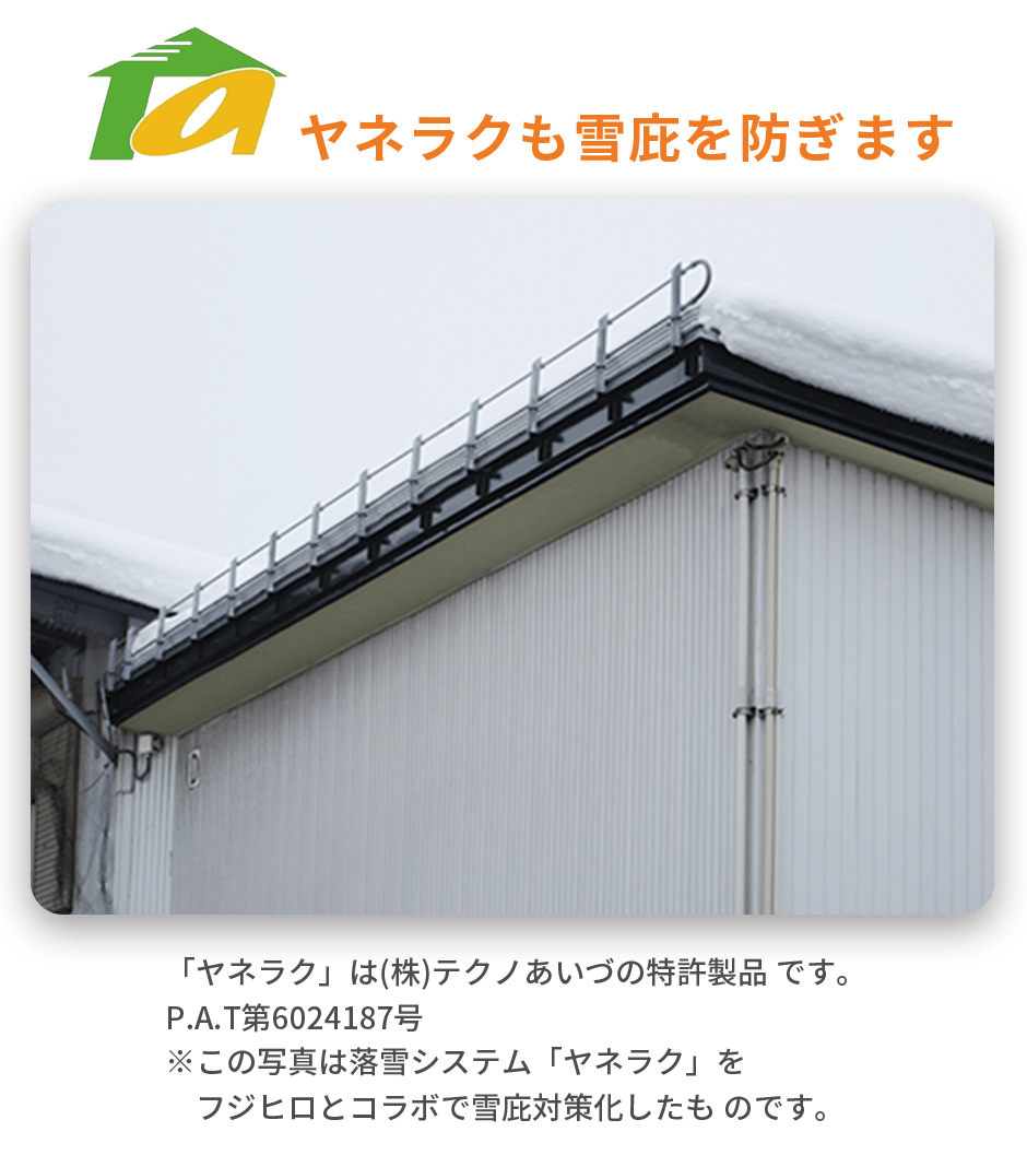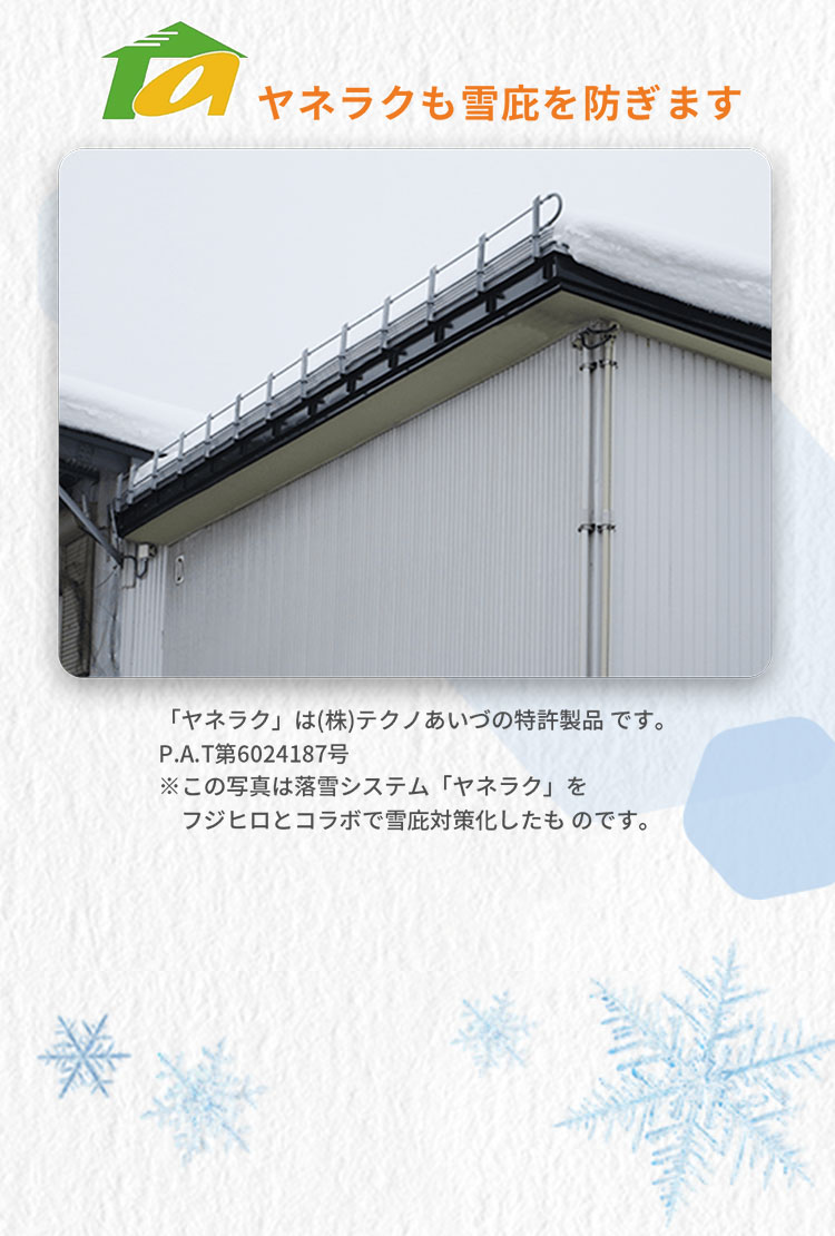 雪の多い地域では、屋根の上をこまめに除雪することは困難です。しかし、積雪量が増えていくとあっという間に雪庇となり、落雪する危険があります。このシステムは雪庇をコントロール出来るので、建物周りの安全が確保されます。