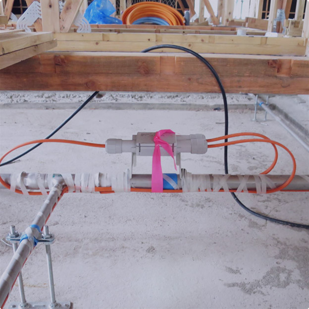 - 配管に這わせて縛るだけのシンプルな施工で、メンテナンスなどの負担を減らします。また、複雑な形状の箇所への適用も可能です。